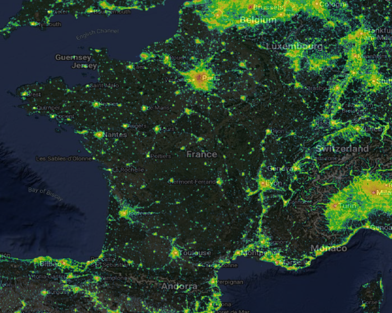 Atlas sur la Pollution Lumineuse reposant sur les données de plusieurs satellites de la NASA et couvrant la période de 2016 à 2024