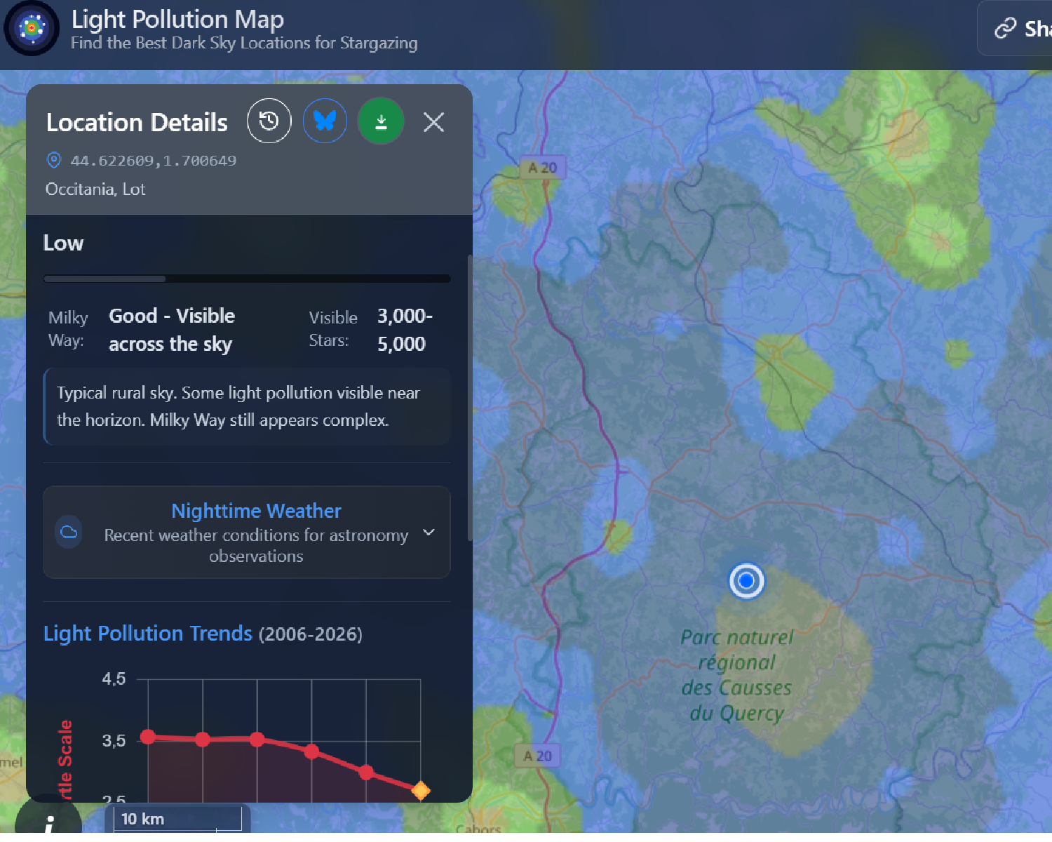 Lien : https://darkskylab.com/en/light-pollution-platform